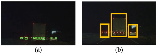 16] to find the locations of rear car lights within a video frame. Then the lights are paired using image mirroring, and the areas between paired lights are the initial guesses for the regions-of-interest [