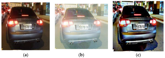 Figure 10 compares the original night image, which has low contrast; with images preprocessed using Log-based MSR and our Sigmoid-based MSR. As can be seen, the image processed with the Log-based MSR in