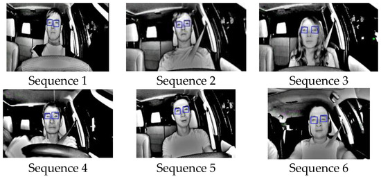 The last experiment was designed to test the accuracy of the driver drowsiness detection system. Six infrared video sequences taken at 20 fps of five different drivers were obtained, as shown in