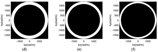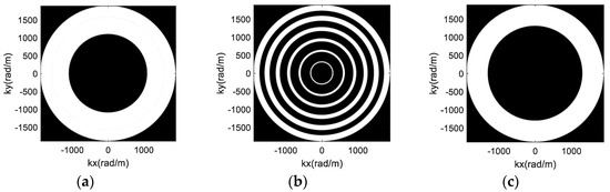 Based on geometric knowledge, the area of annulus is proportional to (), which indicates that the area of the spectral support increases with an increase of . Hence, the second type of the spatial distribution in Figure 4b has the largest area.