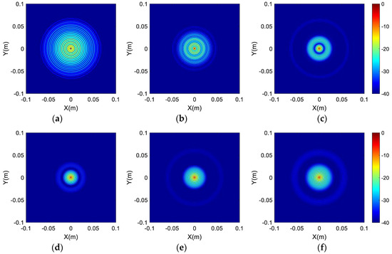The two-dimensional imaging results at (0, 0): (a) Type I; (b) Type II; (c) Type III; (d) Type IV; (e) Type V; (f) Type VI.