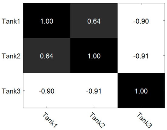 Correlation coefficients of three different tasks. The term ‘Tank1’ (‘Tank2’, ‘Tank 3’) denotes the task to classify tank 1 (tank 2, tank 3).