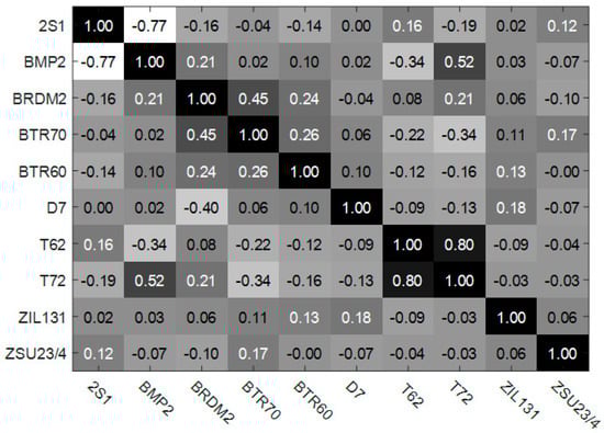 Correlation coefficients of ten different tasks. The term’2S1’means the task to recognize vehicle 2S1 and the meanings of other terms are similar to this one.