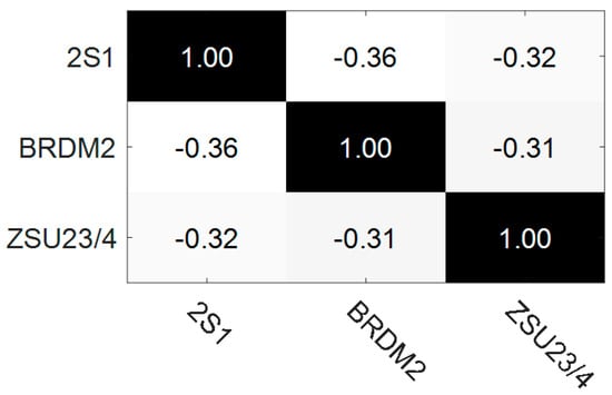 Correlation coefficients of three different tasks. The term’2S1’means the task to recognize vehicle 2S1 and the meanings of other terms are similar to this one.