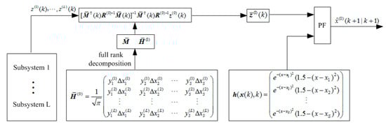For the systems in Equations (1) and (4), we obtained the centralized fusion PF combined with the particle filter. However, Equation (4), with a high dimension, will result in high computational costs, particularly in massive sensor networks. Therefore, it is important to find the equivalent or approximate fusion methods to reduce the computational cost.