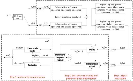 As shown in Figure 4, mitigation architecture can be divided into three steps including signal extraction, best delay searching and power residuals optimization, and nonlinearity compensation. Since the reason and method of step 3 have been introduced in Section 2, step 1 and step 2 will be discussed in this section.