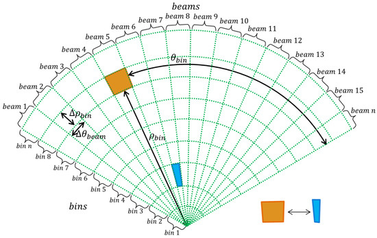 Figure 2. Due to the FLS conception, the height information of a bin can not be distinguishable and, therefore, the acoustic image is a 2D projection on the horizontal plane of the observed environment.