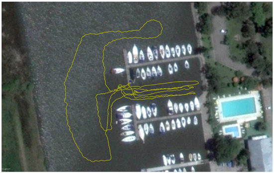 Figure 7 shows a satellite image of the harbor with the trajectory traveled by the ROV.