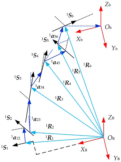 Taking for example, according to the design and processing requirements of the sensors, the directions of and are identical. Meanwhile, is taken as the direction that joint points at joint , i.e.: