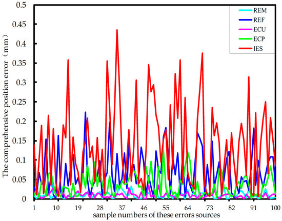 The influence of the five error sources on the comprehensive position error of the platform.
