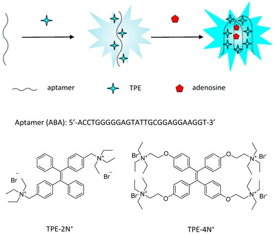 Analytical principle of the tetraphenylethene (TPE)-aptamer probe for adenosine detection.