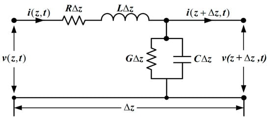 We call Equations (3) and (5) the general transmission-line equations, which are first-order partial differential equations based on and . For simplifying the pair partial differential equations, the time harmonic cosine function is used and the voltage and the current can be expressed as