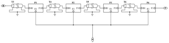 The piezoelectric rings located in the piezoelectric ceramic stack are connected together mechanically in series as shown in Figure 8. However, they belong to parallel relationship in the electrical terminals []. Here, T3, T4, T5, T6 are the metal electrodes and P1, P2 and P3, P4 are the piezoelectric ceramic rings.