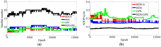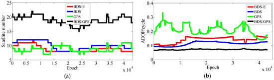 (1) Analysis of number of satellites in BDS/GPS, BDS and GPS