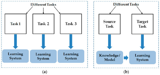 Demonstration of the difference between: (a) traditional machine learning technique; and (b) transfer learning technique.