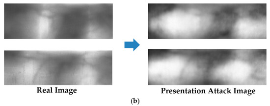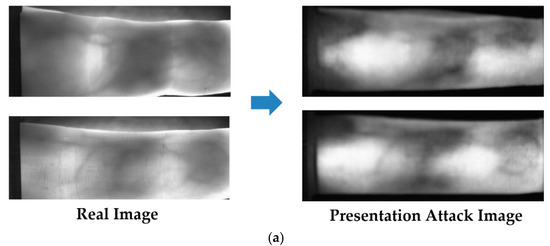 Recently, finger-vein recognition has been developed and proven to be an efficient biometric authentication feature. Unlike other biometric features, the finger-vein biometric authentication procedure uses the pattern of blood vessels that is underneath the skin of the fingers to establish an individual’s identity. Therefore, skin condition has little impact on the process and it can be very difficult to steal finger-vein features because a near-infrared light (NIR) source is required to capture the blood vessel structure. However, it is still possible to spoof the finger-vein recognition system by using a stolen finger-vein image. As proven in previous research [23,24,25,26,27,28], the spoofing-attack can be done by printing the stolen finger-vein image on certain materials (such as paper or film) using carbon ink and attaching it on a real (live) finger during the image acquisition. Therefore, spoof detection methods, named as presentation attack detection (PAD) methods, for finger-vein biometric systems are necessary to protect the finger-vein recognition system from spoofing attacks.