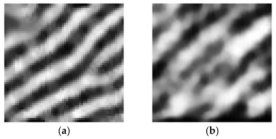 Fingerprint images for different sensing distances. (a) Image for a 250-µm-thick passivation layer; (b) Image for a 300-µm-thick passivation layer.