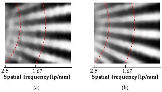 Figure 10 shows comparative data of images captured with a conductive pattern rubber. Figure 10a, which is the image captured by the conventional sensor without the air-wall, shows blurry boundaries between ridges and valleys at a spatial frequency of 2.5 lp/mm. However, the proposed sensor with the air-wall could clearly distinguish ridges and valleys at spatial frequencies even higher than 2.5 lp/mm.