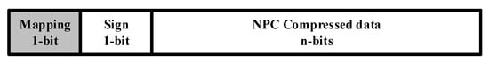 Figure 3 shows the output format of signal Xnpc. Determining whether data was mapped in Huffman LUT can be achieved by adding a mapping sign in the first bit of the output format. The second bit is a sign bit indicating whether data Xnpc is positive or negative. The third part of the output presents data bits of Xnpc. The number of bits n ranges from and the bit length is small in cases where items of data are repeated frequently.