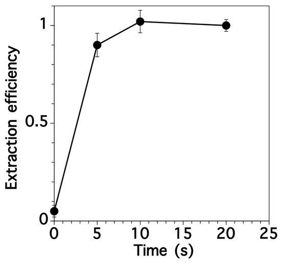 Extraction efficiency of Cd from brown rice samples as a function of grinding time. Error bars indicate the standard deviation, which was determined using three replicates.