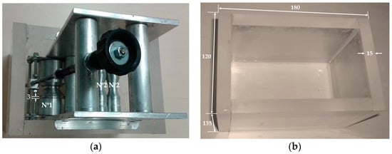 According to the design concept study developed in our studies [] and presented in Appendix A (Figure A1) an aluminum roll to roll laboratory device and plexiglass chamber (Figure 8) were realized and used for fibrous sensor production, guaranteeing good quality and optimal coating repeatability.
