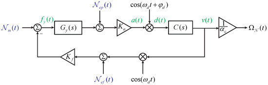 Different from the open-loop operation, noise sources of the force-rebalance operation are in the closed-loop, making the noise propagate circularly. The basic idea is to isolate the noise sources from the closed-loop to make the analysis straightforward. Consider the system dynamics of the model demonstrated in Figure 8
