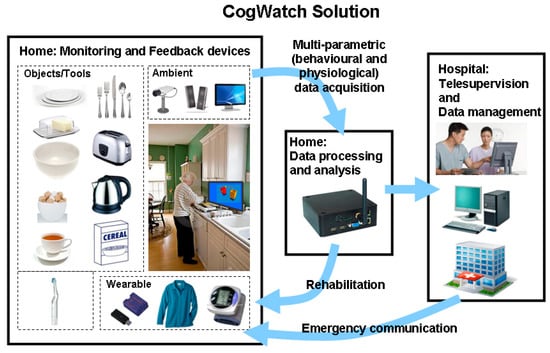 - Hermsdörfer, J.; Bienkiewicz, M.; Cogollor, J.M.; Russel, M.; Jean-Baptiste, E.; Parekh, M.; Wing, A.M.; Ferre, M.; Hughes, C. CogWatch—Automated Assistance and Rehabilitation of Stroke-Induced Action Disorders in the Home Environment. In International Conference on Engineering Psychology and Cognitive Ergonomics; Springer: Berlin/Heidelberg, Germany, 2013; pp. 343–350. [Google Scholar]