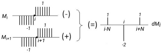where is the step-like mask centered on the i-th position; and S is the brightness vector of a line. Calculating the difference (), and using the property of the difference illustrated Figure 9, we have