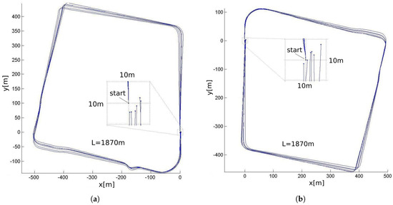 Evaluationof the dead reckoning sensor on a closed path: (a) clockwise direction; (b) counterclockwise direction.