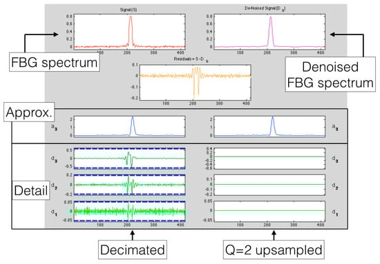 - Zhaoxia, W.; Haili, Y. Fiber Bragg Grating Peak Wavelength Detection Technique Based on Wavelet Analysis. In Proceedings of the IEEE International Conference on Internet Computing & Information Services (ICICIS), Hong Kong, China, 17–18 September 2011; pp. 462–464. [Google Scholar]