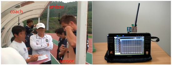 28]. Candidate athletes with lower recovery heart rates can be considered for selection. Traditional heart rate measurement in physical tests uses the fingertip and the pulse sensor, which is wired, and simultaneously measuring the heart rates of several people at the same time is a complicated undertaking. Our patch-type sensor can record the heart rate every second for eight people simultaneously, and the data can be downloaded to a personal computer for analysis. The battery enables continuous monitoring for eight hours. The sensor is lightweight and small, and a rubber case is selected for the best natural fit with the body curvature. Therefore, athletes do not suffer discomfort during training.