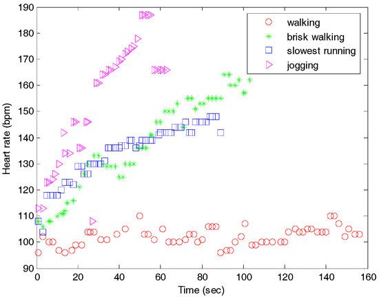 Here, either one or multiple factors, such as workload intensity, time, and distance, are fixed during the experiments. In this study, the distance is fixed in the field test. Walking, jogging, brisk walking, and slowest running have the same distance of 400 m. The fixed workload experiments could respond to the stress reaction, and it indicates that it is capable of motion.