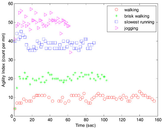 17]. The measurement of agility is based on the time that an athlete needs to complete the prescribed exercise or how many steps they can complete in a given period. It is well known that the intensity of body movement has a close relationship with the physical demand of the human circulatory system. The agility index is manually calculated by a supervisor. The manual measurement, calculation, and analysis of the agility index are inconvenient and inaccurate. Human motion analysis has been primarily dominated by the video camera [