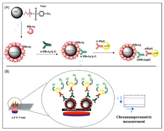 - De la Escosura-Muñiz, A.; Maltez-da Costa, M.; Sánchez-Espinel, C.; Díaz-Freitas, B.; Fernández-Suarez, J.; González-Fernández, Á.; Merkoçi, A. Gold nanoparticle-based electrochemical magnetoimmunosensor for rapid detection of anti-hepatitis B virus antibodies in human serum. Biosens. Bioelectron. 2010, 26, 1710–1714. [Google Scholar] [CrossRef] [PubMed]