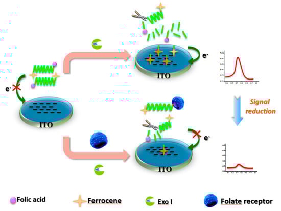- Ni, J.; Wang, Q.; Yang, W.; Zhao, M.; Zhang, Y.; Guo, L.; Qiu, B.; Lin, Z.; Yang, H.-H. Immobilization free electrochemical biosensor for folate receptor in cancer cells based on terminal protection. Biosens. Bioelectron. 2016, 86, 496–501. [Google Scholar] [CrossRef] [PubMed]