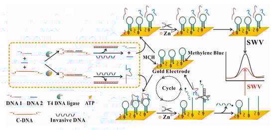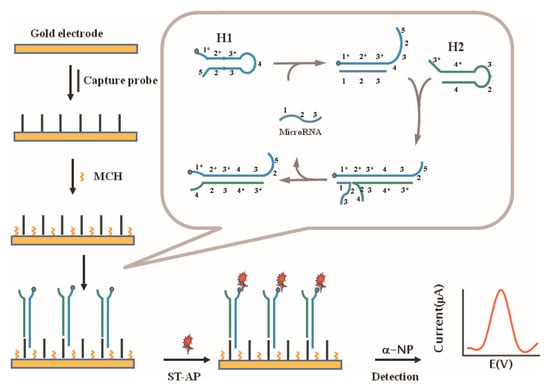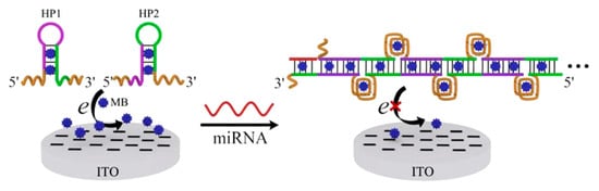 - Zhang, Y.; Yan, Y.; Chen, W.; Cheng, W.; Li, S.; Ding, X.; Li, D.; Wang, H.; Ju, H.; Ding, S. A simple electrochemical biosensor for highly sensitive and specific detection of microRNA based on mismatched catalytic hairpin assembly. Biosens. Bioelectron. 2015, 68, 343–349. [Google Scholar] [CrossRef] [PubMed]