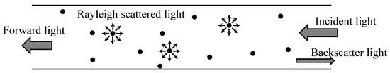 Schematic illustration of Rayleigh scattering in an optical fiber.