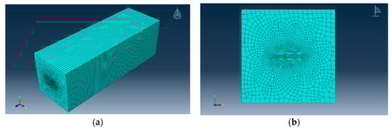 Mesh model for FEA calculation. (a) Isometric view of the mesh model; (b) front view of the mesh model.