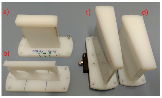 High-density polyethylene (HDPE) sample holders: (a) rectangular shape; (b) dish holder; and (c,d) wedge shape.