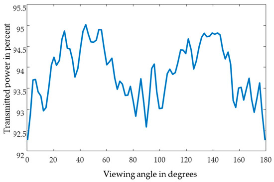 Plot of the Celes-simulated transmitted intensity at different viewing angles of an arbitrary cluster of 500 spheres.