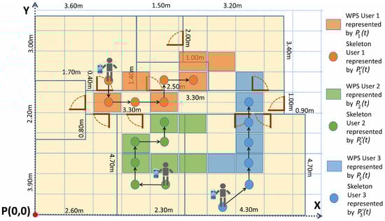 The achieved solution links each user to their skeleton positions in the UCS. Although some cells are located between two or more rooms, the system obtains the final position of the users according to Kinect sensors. It means that the system relates each WPS cell trajectory to the corresponding skeleton trajectory, but using the skeleton coordinates as the real user’s positions, and considering WPS information just for obtaining their identifications.