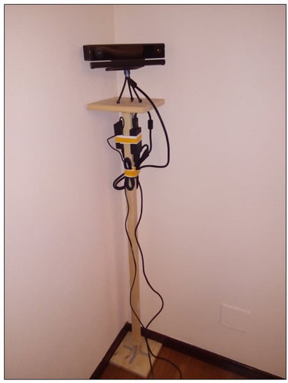 depth maps with a resolution of 512 × 424 pixels. The horizontal field of view of the RGB-D sensor is 70°, with a working range of 4.5 m. All of these devices, mounted on a tripod over a wooden platform (see