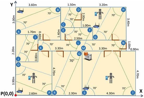 If two or more RGB-D sensors detect the same user, that user will be situated at the same position of the UCS (an error of 0.5 m between users is considered for discerning two users). One restriction to the model is the fact that if an RGB-D sensor has detected z skeletons, the results must conclude that there are z users in the range of that RGB-D sensor. The system might detect a user in the adjacent room if their position is near the wall and this restriction is not applied. This happens because the floor has been divided into cells in the general UCS, and some of these cells are, at the same time, in different rooms. Finally, the algorithm considers that the number of WPS trajectories must be equal to the number of skeleton trajectories.