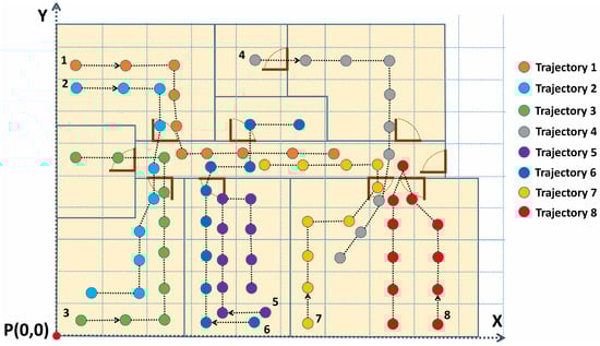 The performance of the system has been evaluated by a group of users going over 50 different trajectories. These trajectories have considered multiple types of movements. Some of the trajectories have started in a room and finished in another one. Other trajectories have just included movements in one room, or movements from one to another room, returning to the first one. Some paths have intersected or overlapped some parts of other ones. Others have simply been similar in path. As illustrated in