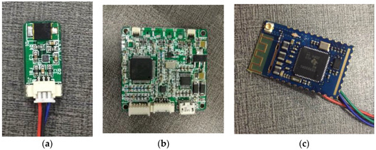 Figure 3. Hardware prototype. (a) Prototype of receiver; (b) Prototype of processing unit; (c) Convert Serial port to Wi-Fi.