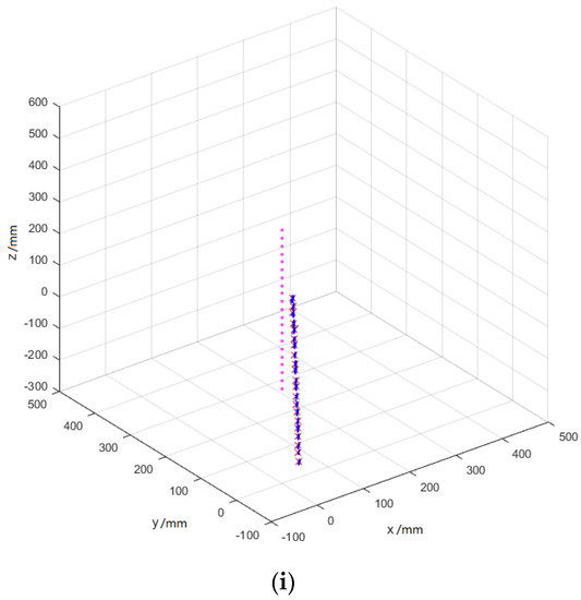 Figure 9. The jitter test results at different distances along each axis. (a) 1 m away, along the x-axis; (b) 1 meter away, along the y-axis; (c) 1 m away, along the z-axis; (d) 3 m away, along the x-axis; (e) 3 m away, along the y-axis; (f) 3 m away, along the z-axis; (g) 5 m away, along the x-axis; (h) 5 m away, along the y-axis; (i) 5 m away, along the z-axis.