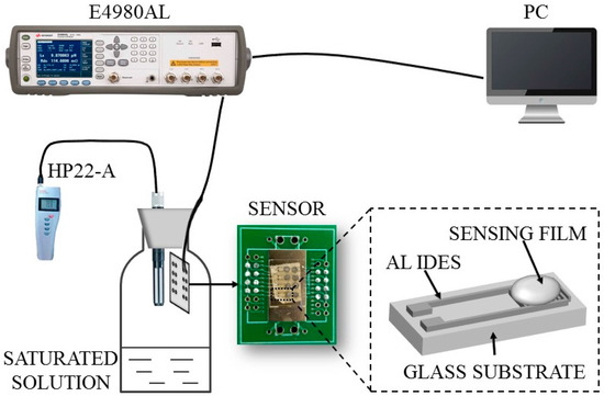 Schematic of the humidity measurement system and of the constructed humidity sensors.