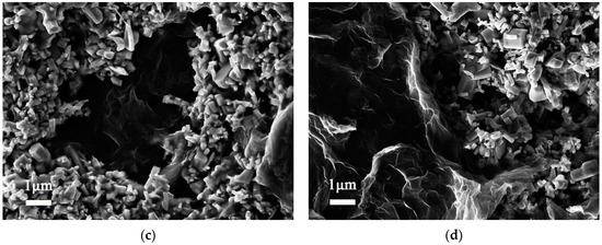 Typical SEM images of (a) PVP-RGO, (b) ZnO, (c) PVP-RGO/ZnO, and (d) ZnO/PVP-RGO films.