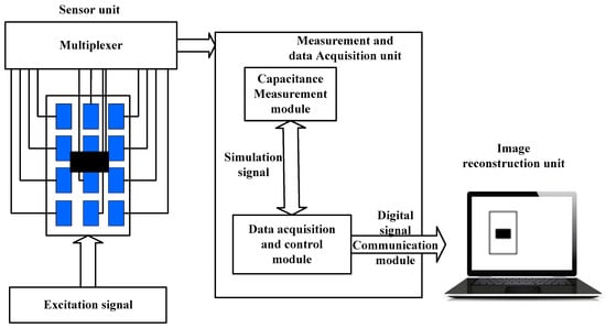 Electrical Capacitance Tomography (ECT) system structure diagram.