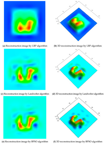 LBP algorithm is still widely used for on-line image reconstruction because of its simplicity. However, it produces poor-quality image and can only provide qualitative information. LBP algorithm is commonly used in qualitative analysis. However, for complex media distribution error detection, its resolution accuracy for image reconstruction is relatively low.